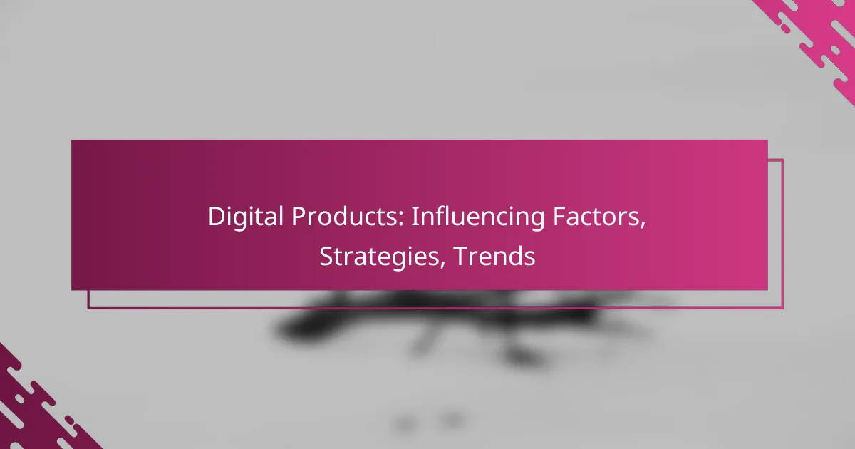 Key factors influencing digital products include market demand, user experience, technological advancements, pricing strategies, and regulatory compliance. Understanding these elements helps businesses tailor their offerings to meet consumer needs and navigate the competitive landscape effectively.